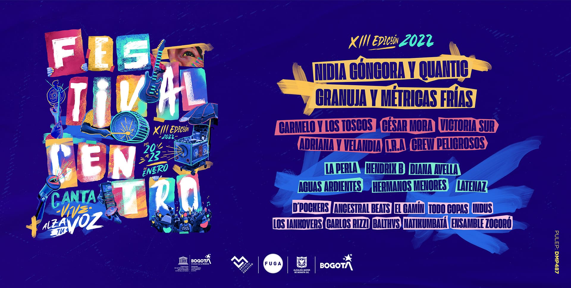 La jornada inaugural del Jueves 20 de Enero, estará a cargo de Nidia Góngora y Quantic, un dúo transoceánico del cual brotan las músicas del pacífico entre texturas electrónicas; Hermanos Menores, una banda de culto capitalina llena de experimentación y paisajes sonoros; I.R.A., la mítica agrupación de punk proveniente de Medellín; Hendrix B, el duo caleño con tintes de pop urbano; y D’Pockers, una agrupación de la localidad de Usaquén que brilla por su hip hop.