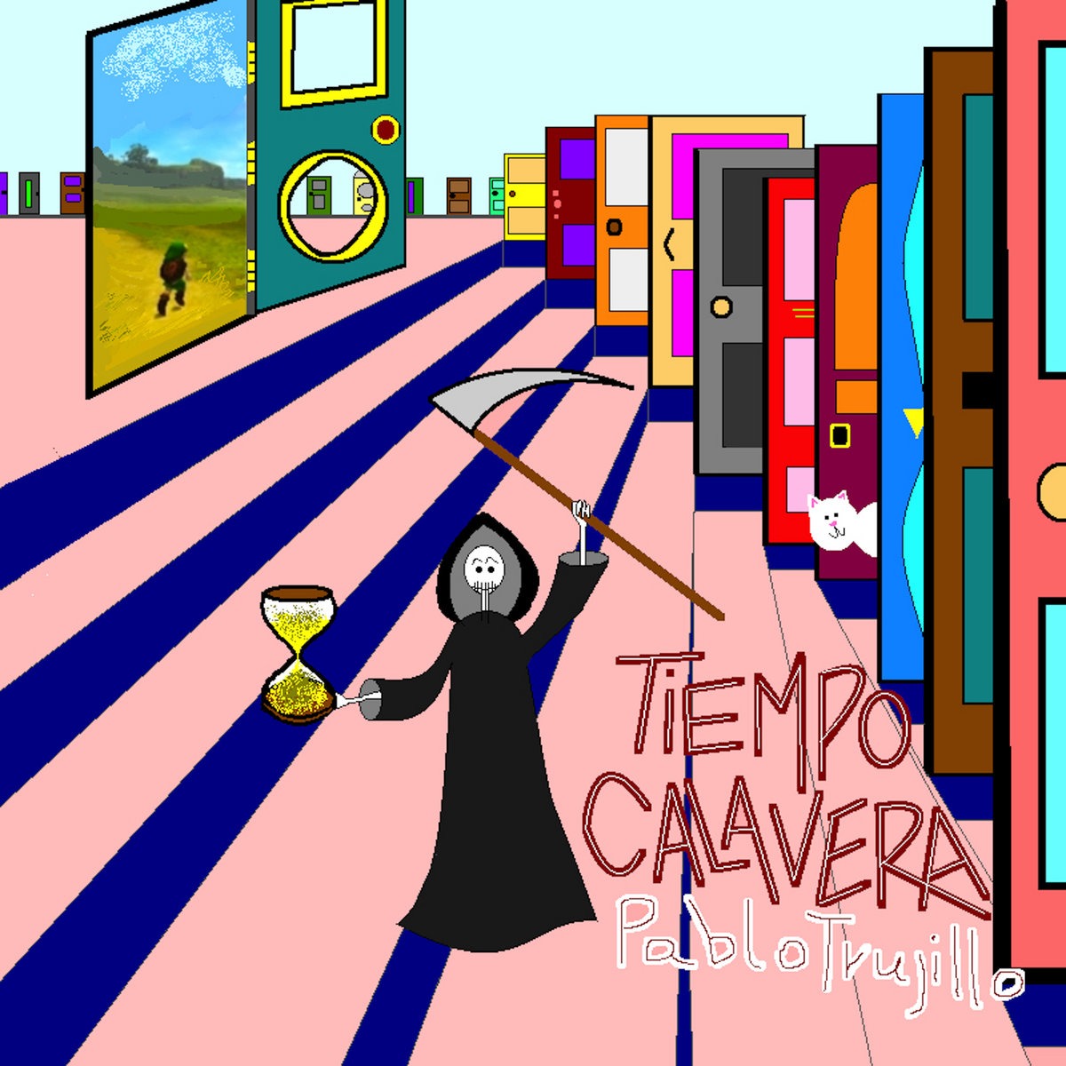 Durante la cuarentena del COVID-19, Pablo Trujillo materializó un sonido. Recogió canciones y bosquejos desde el 2017, por las épocas de su sencillo ‘Súper Fuerte’; llamó a Gatiyo, a Julián Mayorga y a Armenia, y dibujó en Paint a mouse alzado una parca sobre unos escalones rosados. Meses después el resultado es un disco enteramente auto-producido, bien trabajado, muy pulido. Con un pop bailable y enérgico que nos adentra en un nuevo mundo dentro del encierro.